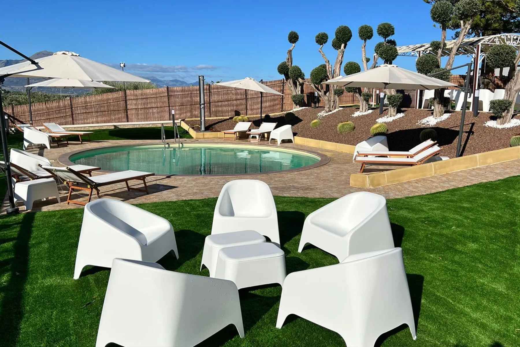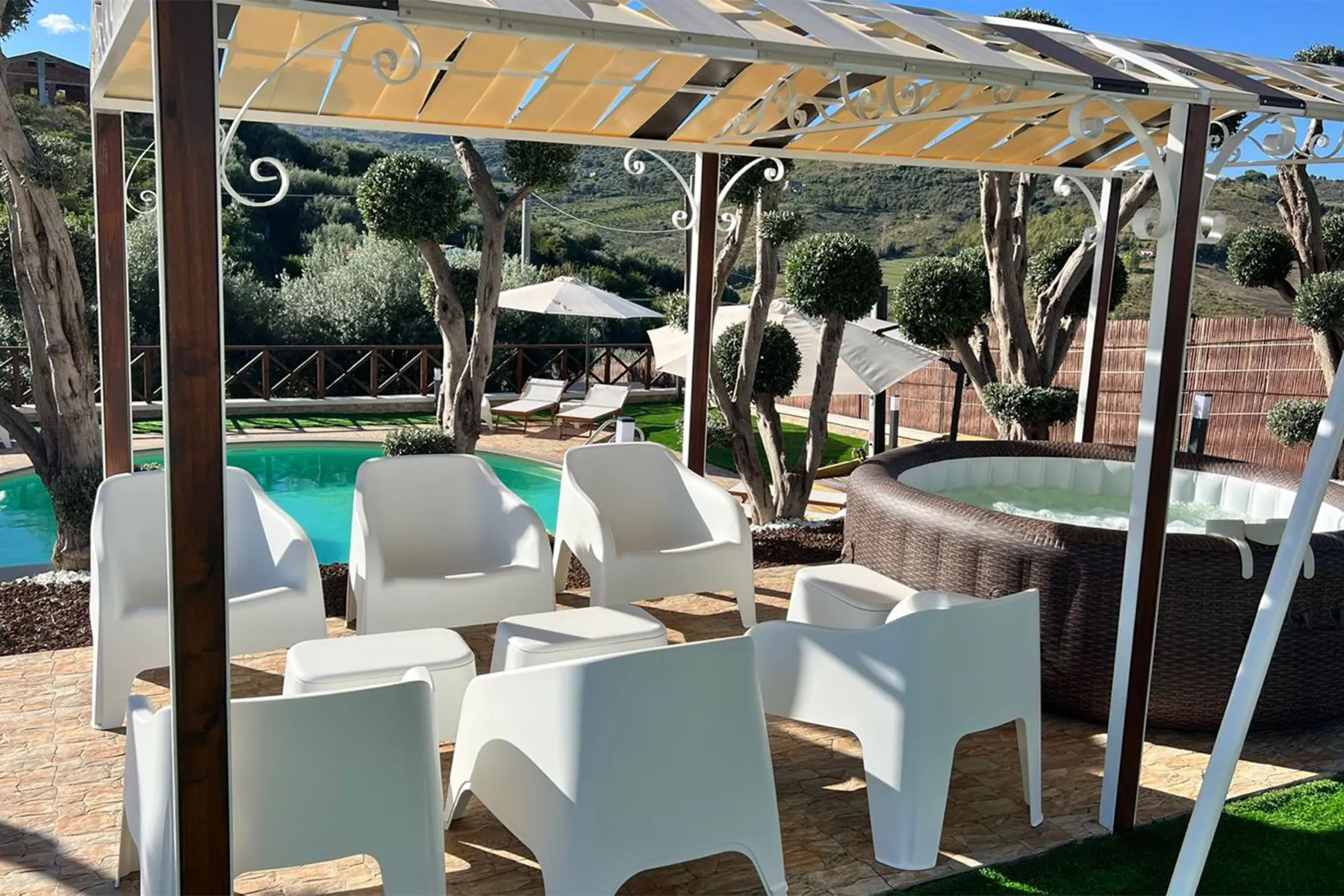 La villa dispone di piscina privata e di vasca idromassaggio, perfette per rilassarsi in totale comfort durante il soggiorno. La posizione strategica e i servizi offerti la rendono una soluzione ideale per una vacanza estiva in Sicilia.